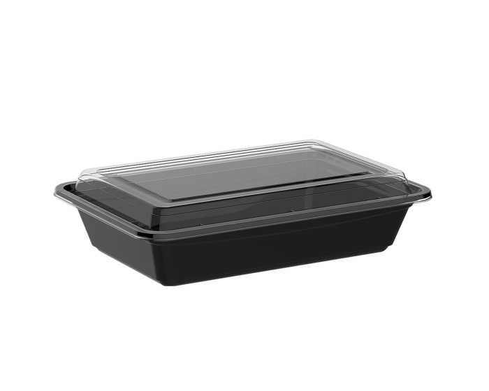 علب ميكرويف مستطيل اسود مع غطاء شفاف 24 انز - 700 مل 150 حبة